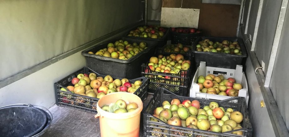 Am Donnerstag wurden die 360 kg Äpfel zur „Mobilen Saftpresse“ am Naturparkzentrum Haus Püllen gebracht.